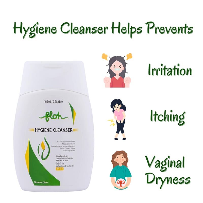Maintain freshness and confidence with Floh Hygiene Cleanser, a clinically tested intimate wash designed to balance pH levels, prevent odour, and protect sensitive skin. Enriched with Sea Buckthorn and Tea Tree Oil, it offers gentle yet effective cleansing for everyday use.